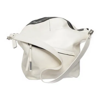 Handbag, Lederhandtasche mit Schultergurt, Solides Schloss und Henkel in mattsilber, Made in Italy & Leather